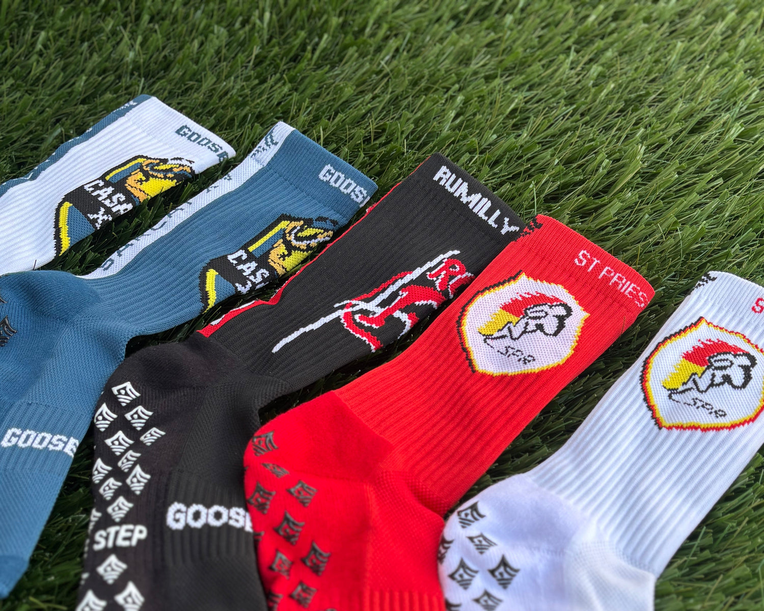 Offrez à votre club des chaussettes personnalisées aux couleurs de votre équipe ! Ajoutez votre logo et choisissez vos designs pour un look unique sur le terrain !